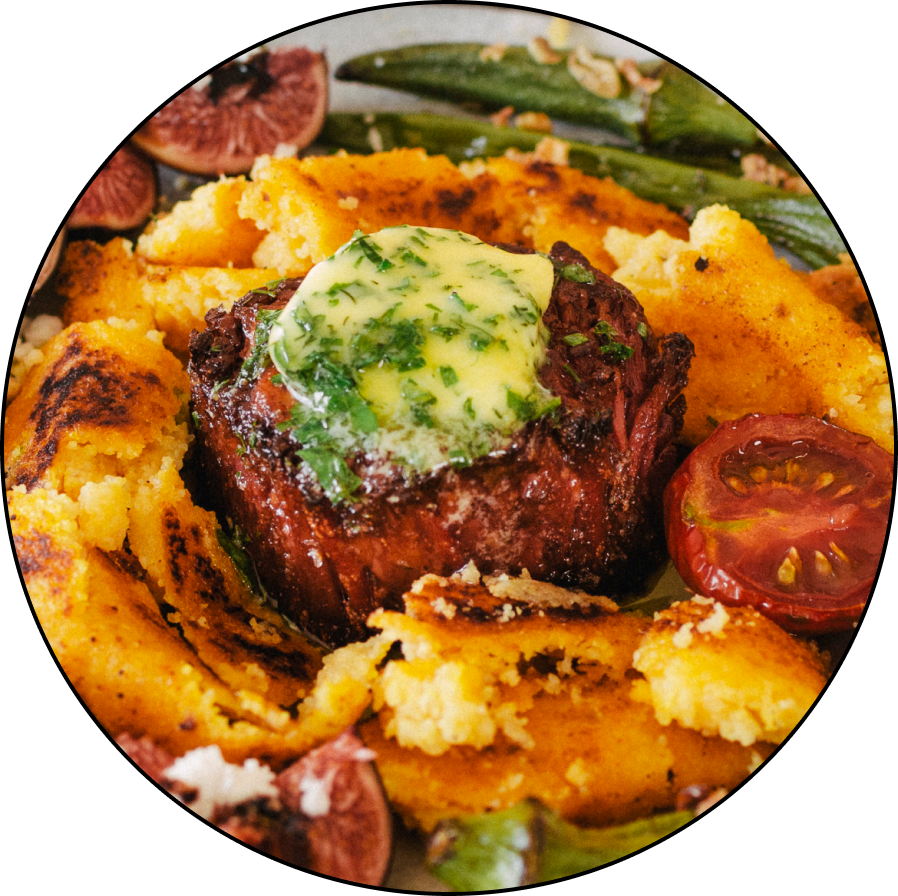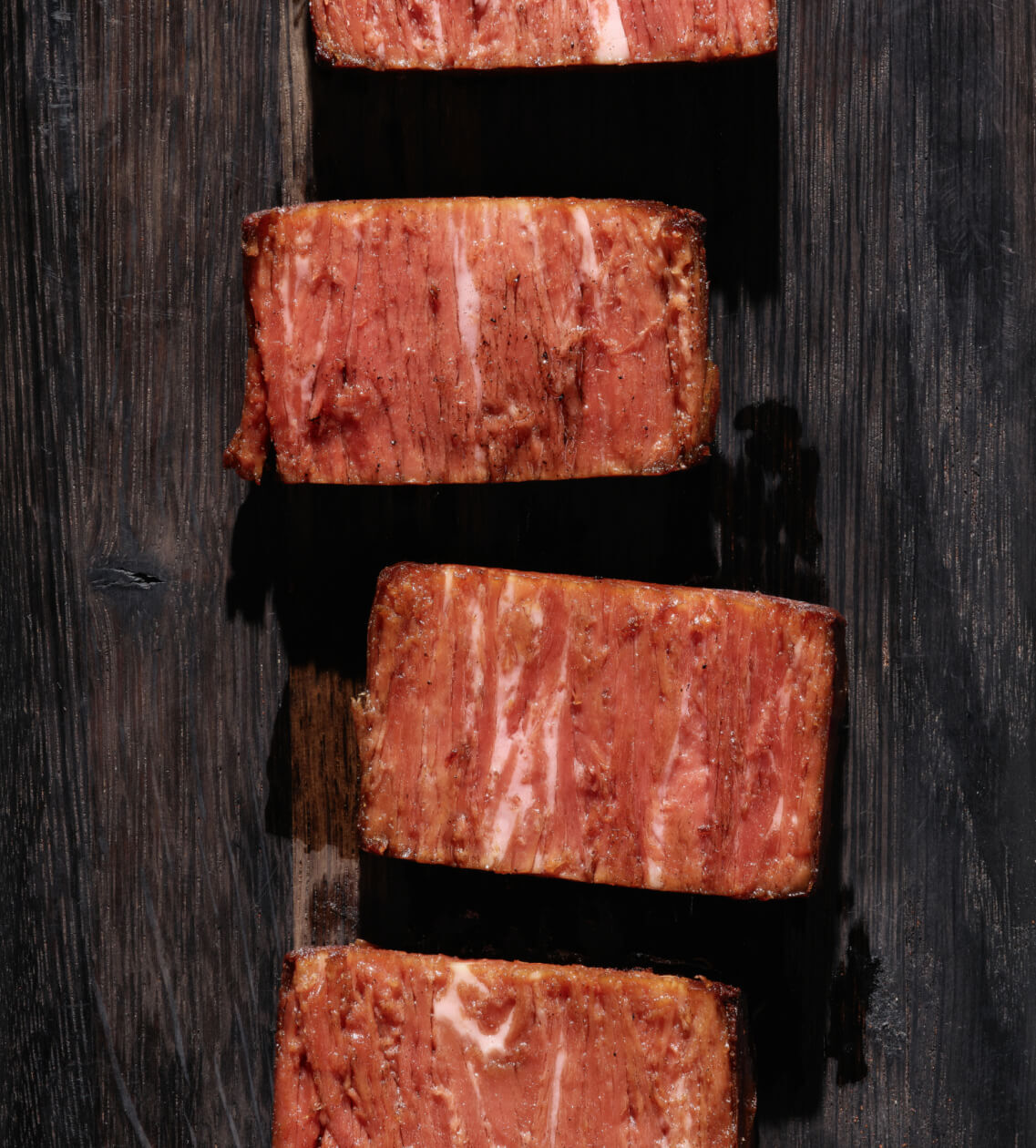 Meet the original Marbles filet. The 'aromatic, meaty medallion' that made plant-based steak a thing. Lush marbling turns every bite into a velvety slip n' slide of buttery mouthfeel. Rapidly-forming crust locks in flavor, ensuring a pleasant outer crisp while the center stays supple and juicy. And let's not forget the impressive array of macro and micro nutrients that secured this little vessel of pleasure a Nutriscore of A.